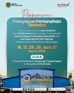 Inside News | Jombang – Pengumuman Pelayanan Pertanahan Terbatas Halo #SobATRBPN, sehubungan ada Libur Nasional dan...