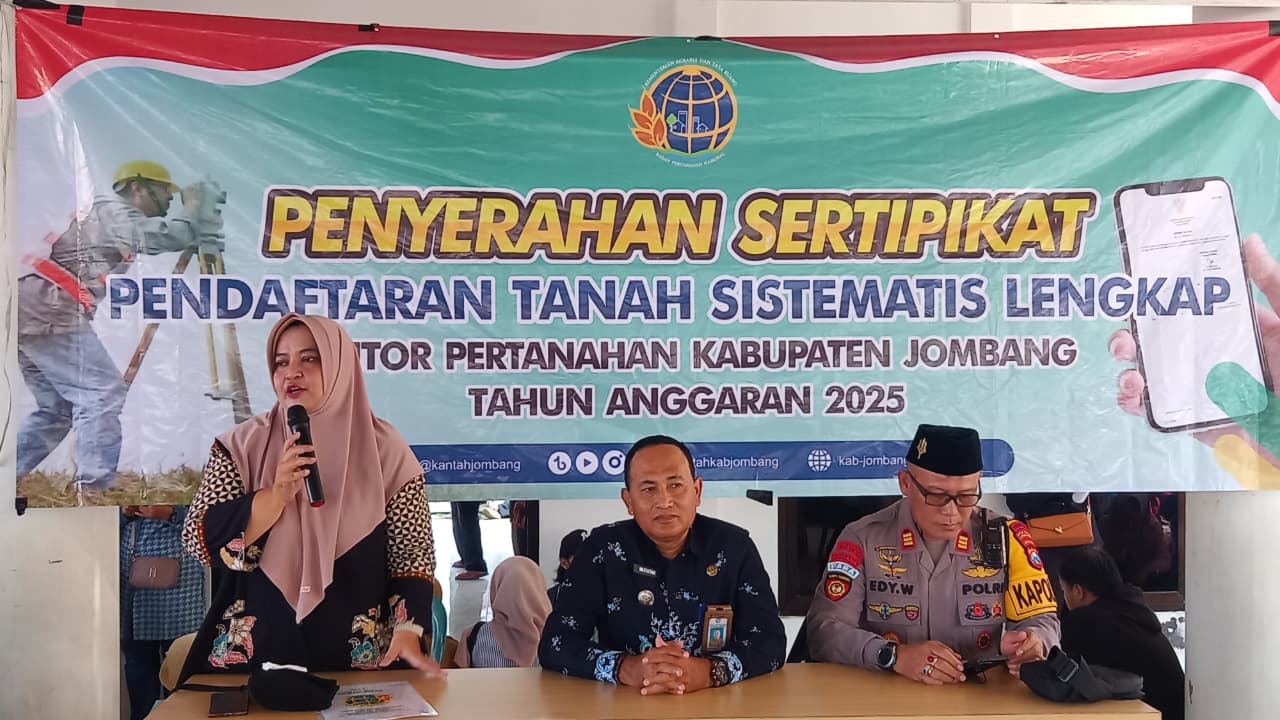 Kegiatan penyerahan sertipikat ini merupakan bagian dari upaya percepatan penyelesaian PTSL Tahun 2025 di Kabupaten Jombang, sekaligus wujud nyata kehadiran negara dalam memberikan kepastian hukum hak atas tanah kepada masyarakat.